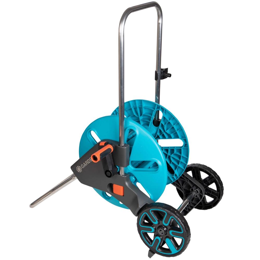 Toutes les informations sur le produitCe chariot à dévidoir Gardena est prêt à l'emploi et s'adapte à toutes les tailles de corps. Un support de forme spéciale empêche le basculement pendant le jardinage. Le raccord de tuyau coudé, l'axe de raccordement rotatif, le dispositif anti-goutte et la manivelle à rotation libre facilitent l'arrosage de votre jardin. La capacité de la longueur de tuyau à être enroulée dépend de la taille du tuyau.