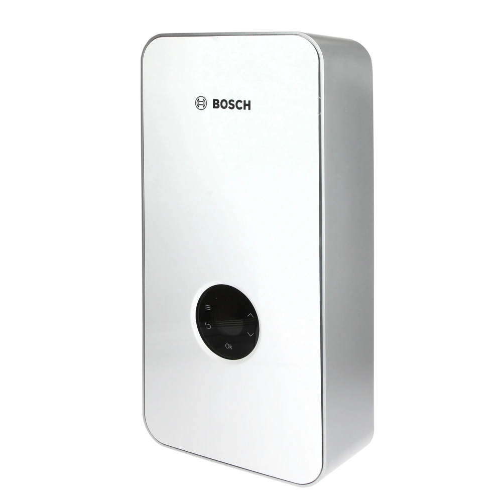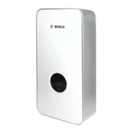 Chauffe-eau instantané Premium au design moderne en verre, commande tactile et écran couleur LED. Il est possible de régler des programmes d'eau chaude souhaités ou des niveaux de température individuels, un affichage de la consommation est intégré. L'application HomeCom Easy permet de commander le chauffe-eau et de contrôler la consommation depuis n'importe où. En combinaison avec des installations solaires, l'eau préchauffée peut être chauffée.