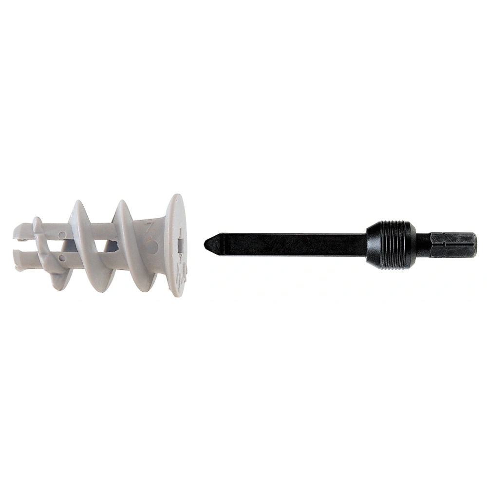 Cheville pour placoplâtre en nylon de haute qualité pour le montage en saillie dans du placoplâtre à parement simple ou double. Elle est vissée à fleur de surface à l'aide d'une visseuse sans fil et de l'outil de pose fourni. Pour une épaisseur de plaque allant jusqu'à 15 mm, il n'est pas nécessaire de prépercer, car le filetage tranchant et autotaraudeur permet une fixation sûre et positive. La cheville est universelle et peut recevoir des vis à bois, à tôle et à panneaux d'aggloméré de 4 à 5 mm d'épaisseur ainsi que différents crochets et œillets.