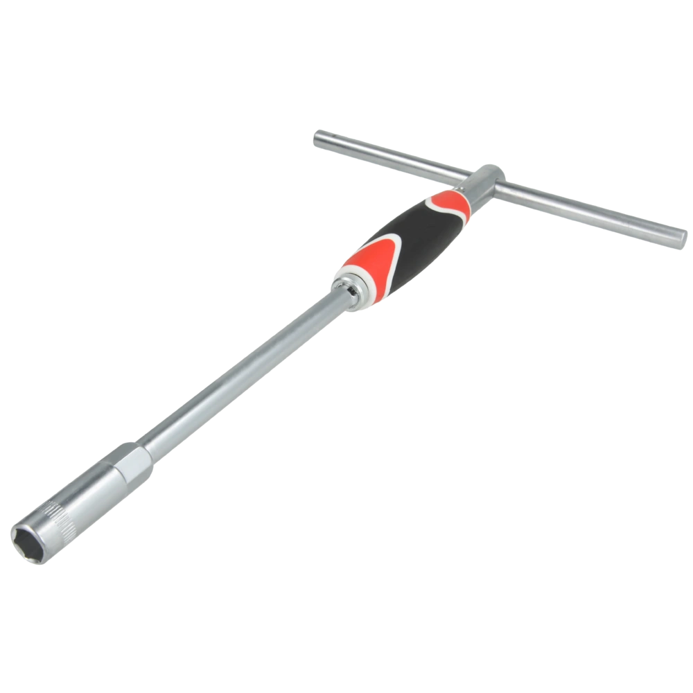 La clé à douille possède une douille hexagonale avec profil FlankTractions. Elle est dotée d'une lame trempée en acier chromé vanadium brillant avec une poignée à deux composants.
