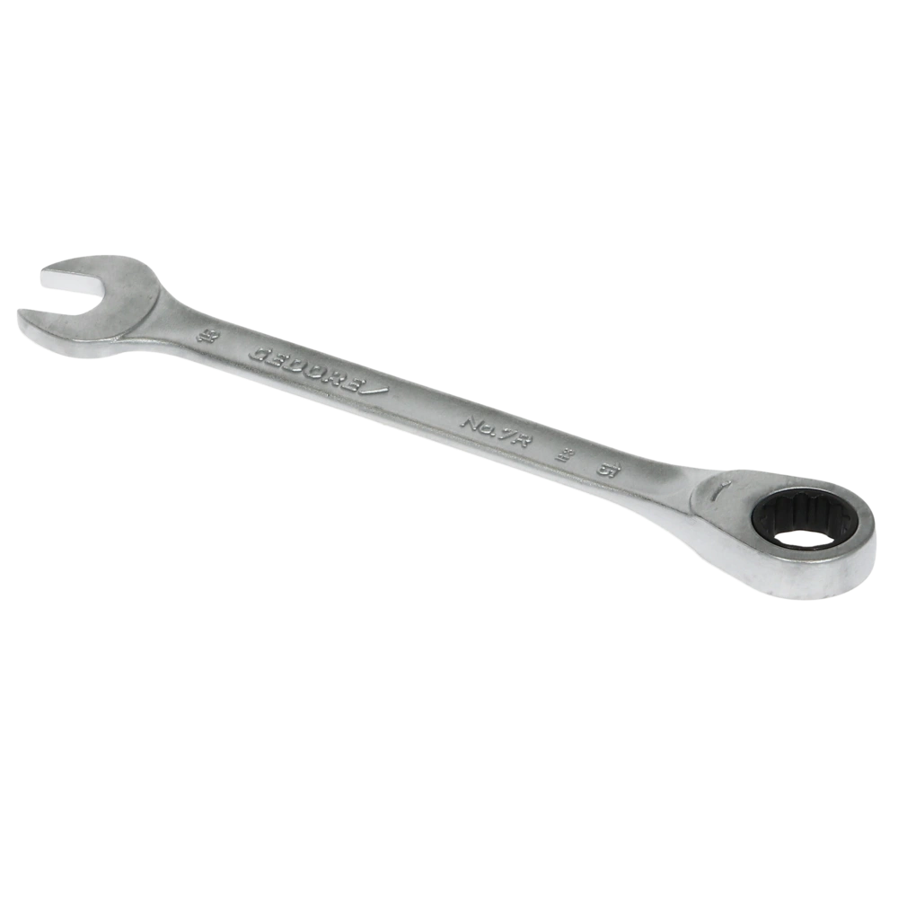 Clé à fourche avec cliquet annulaire. Une transmission de couple élevée et la faible hauteur de la clé offrent de nombreuses possibilités d'utilisation.