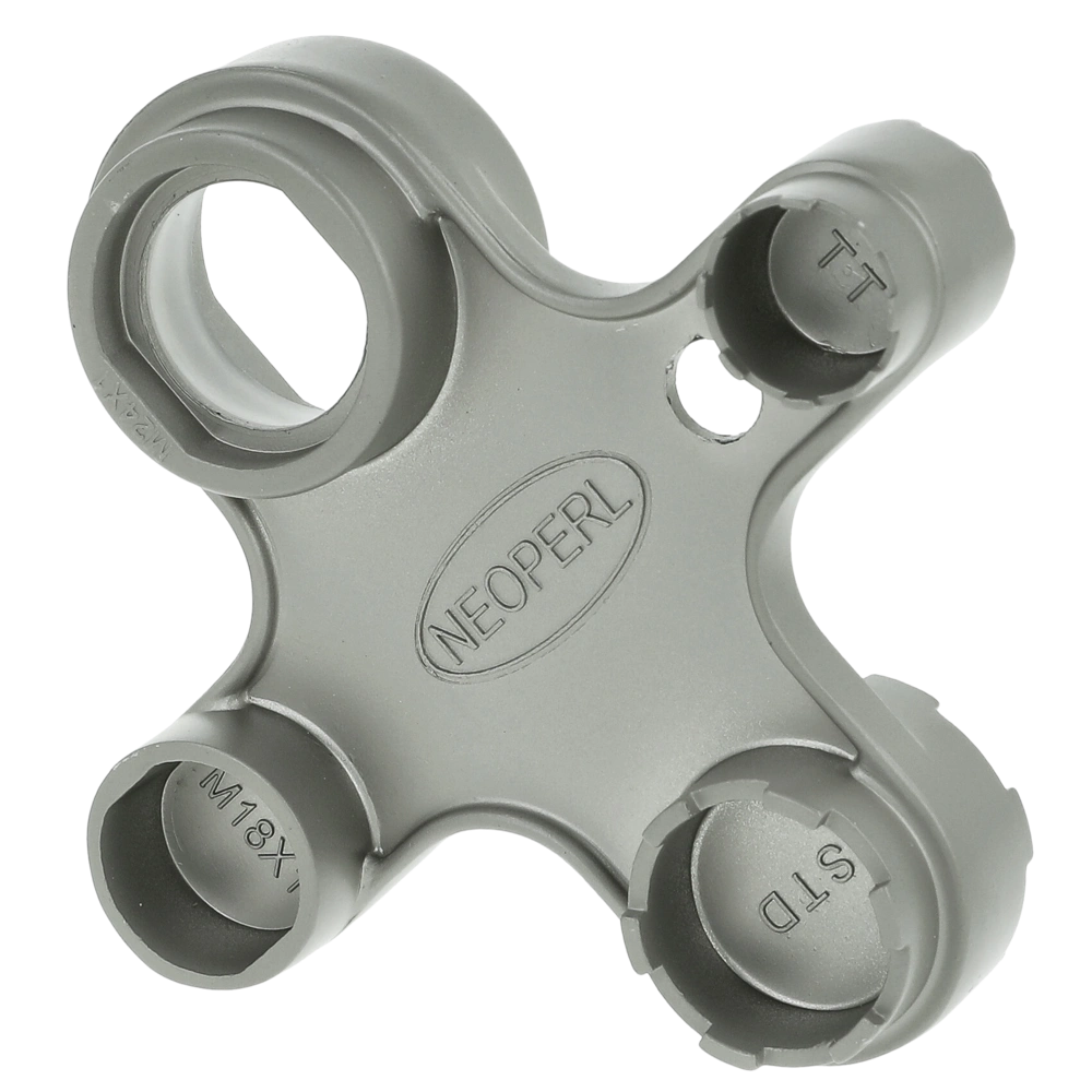 Clé de service universelle pour les mousseurs les plus courants. La clé peut être utilisée comme outil de montage pour les mousseurs avec M22 x 1, M24 x 1, M28 x 1, M18 x 1 et les mousseurs Caché dans les tailles TF, TJ, TT, JR et STD.