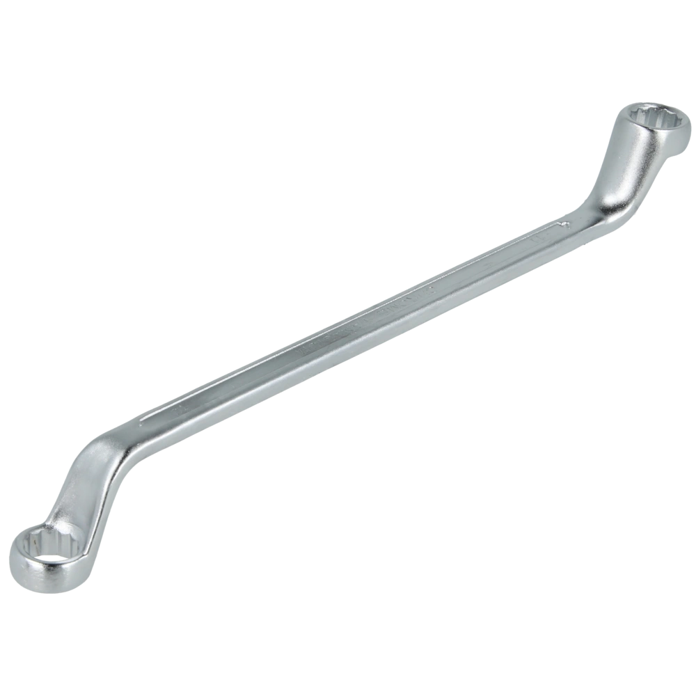 La clé mixte double coudée est en acier au chrome vanadium avec une finition chrome satiné. Elle possède des têtes polies et des anneaux coudés à 75° à paroi mince.