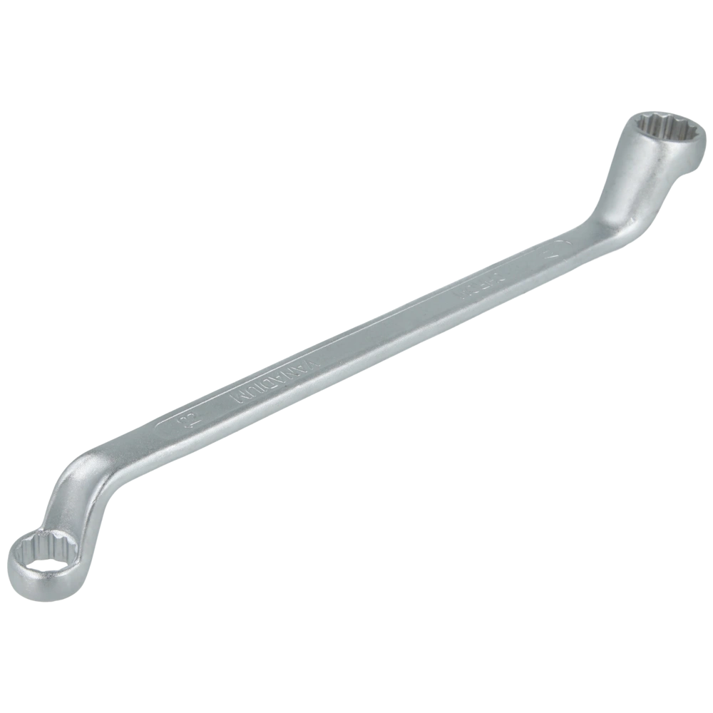 La clé mixte double coudée est en acier chrome-vanadium chromé et satiné. Les deux anneaux coudés sont à paroi mince et polis.