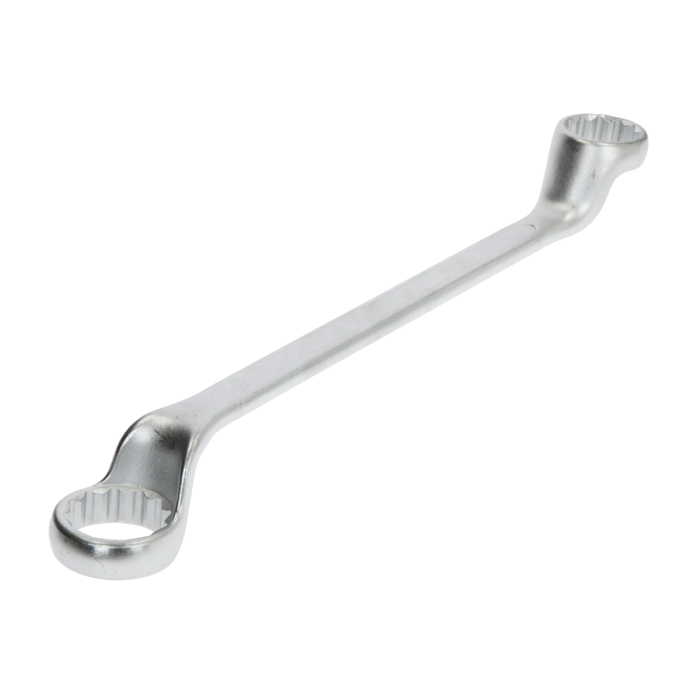La clé mixte double coudée est en acier chrome-vanadium chromé et satiné. Les deux anneaux coudés sont à paroi mince et polis.