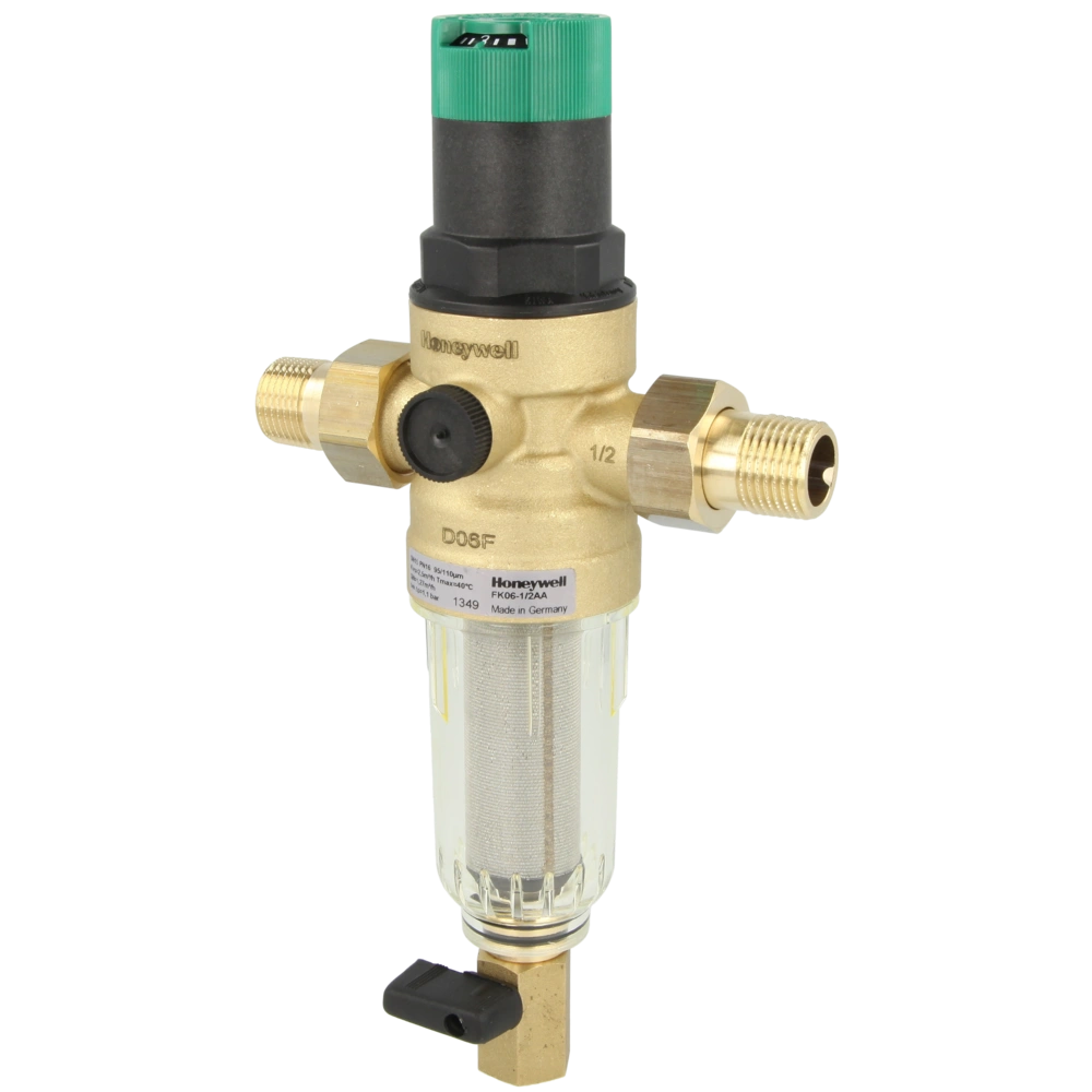 Combinaison de filtre rinçable avec réducteur de pression.