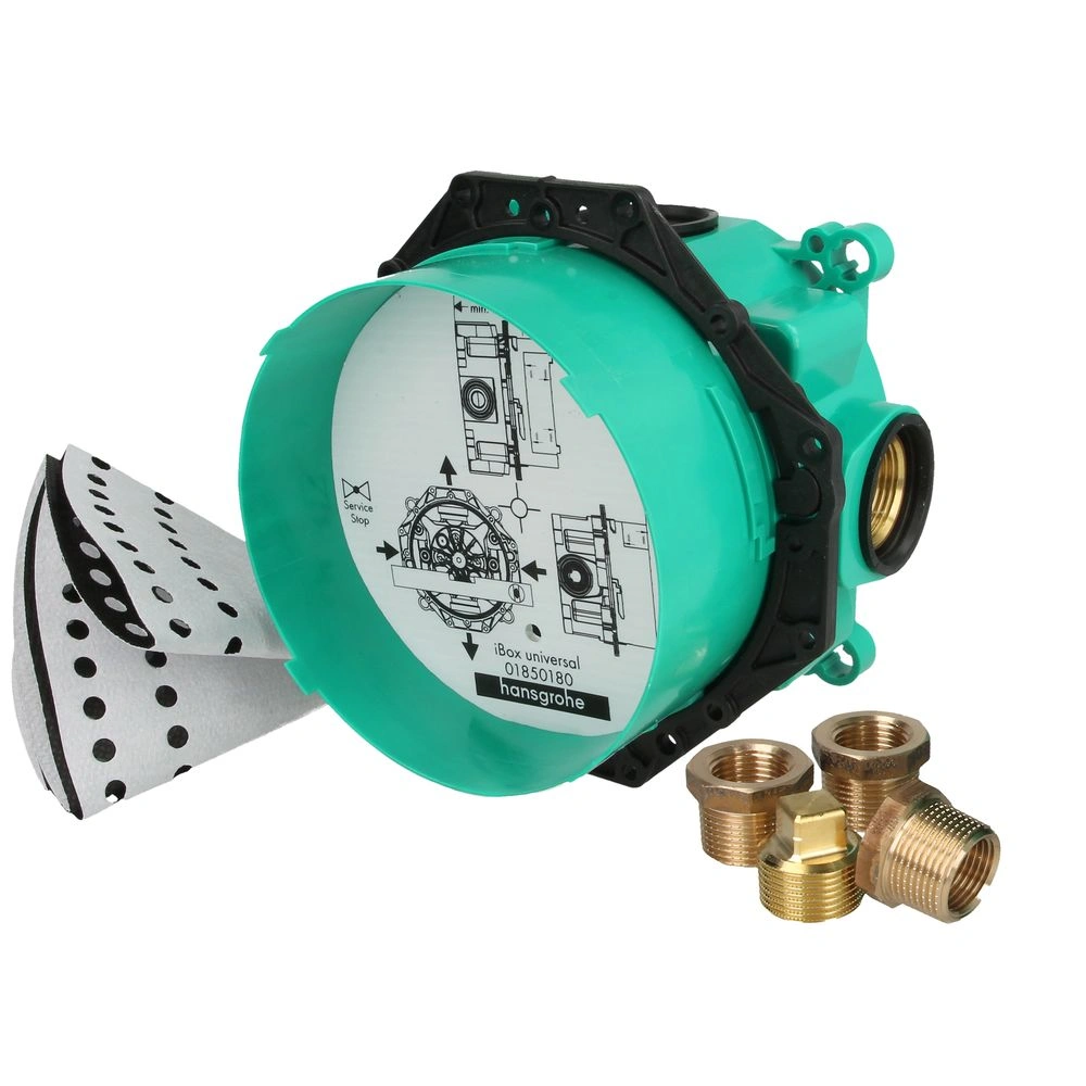 Le corps de base iBox avec robinet d'arrêt convient pour un service simple et à tous les sets de finition de thermostat, de douche et de bain pour montage encastré et pour les sets de finition Pressure Balance, PA-IX 18989/ID.