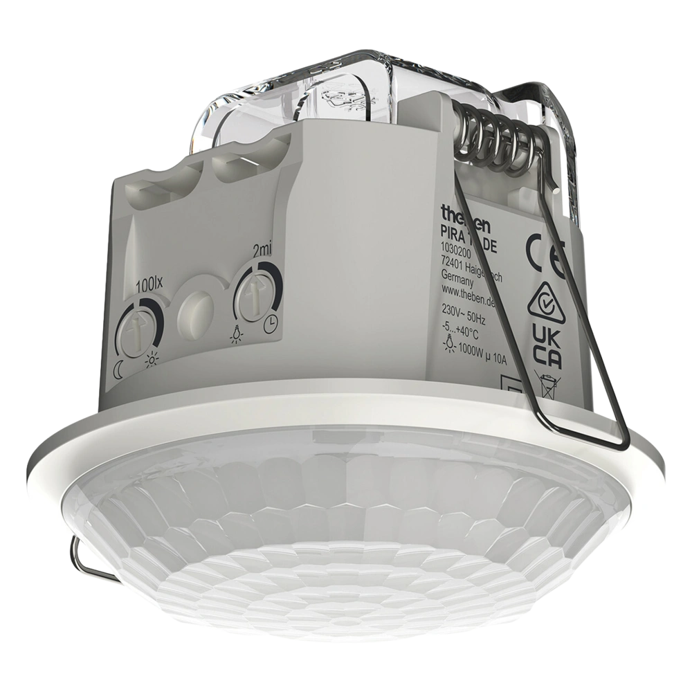 Détecteur de présence à monter au plafond pour la commande automatique de l'éclairage dans les pièces intérieures.