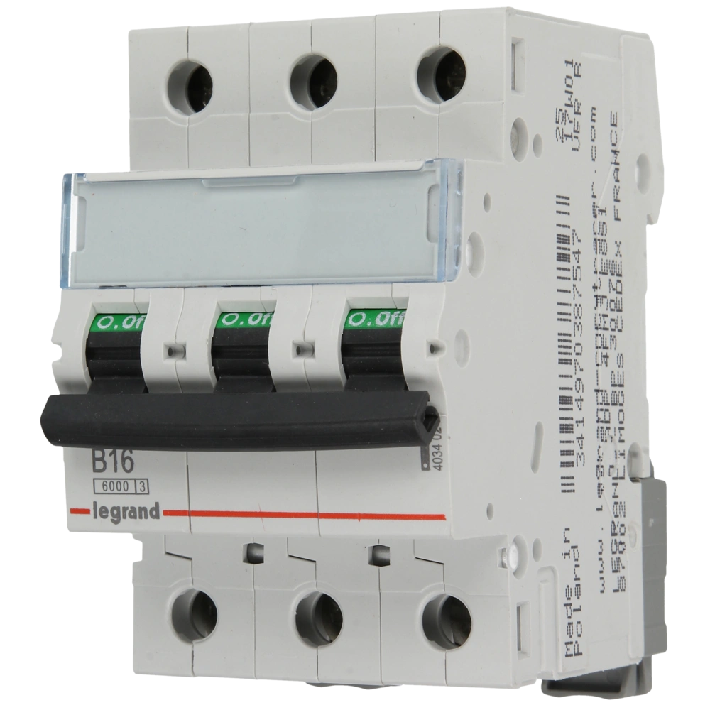 Disjoncteur à 3 pôles pour la coupure automatique de circuits électriques en cas de court-circuit. De plus, une coupure a lieu lorsque les lignes sont menacées par une charge électrique trop élevée...