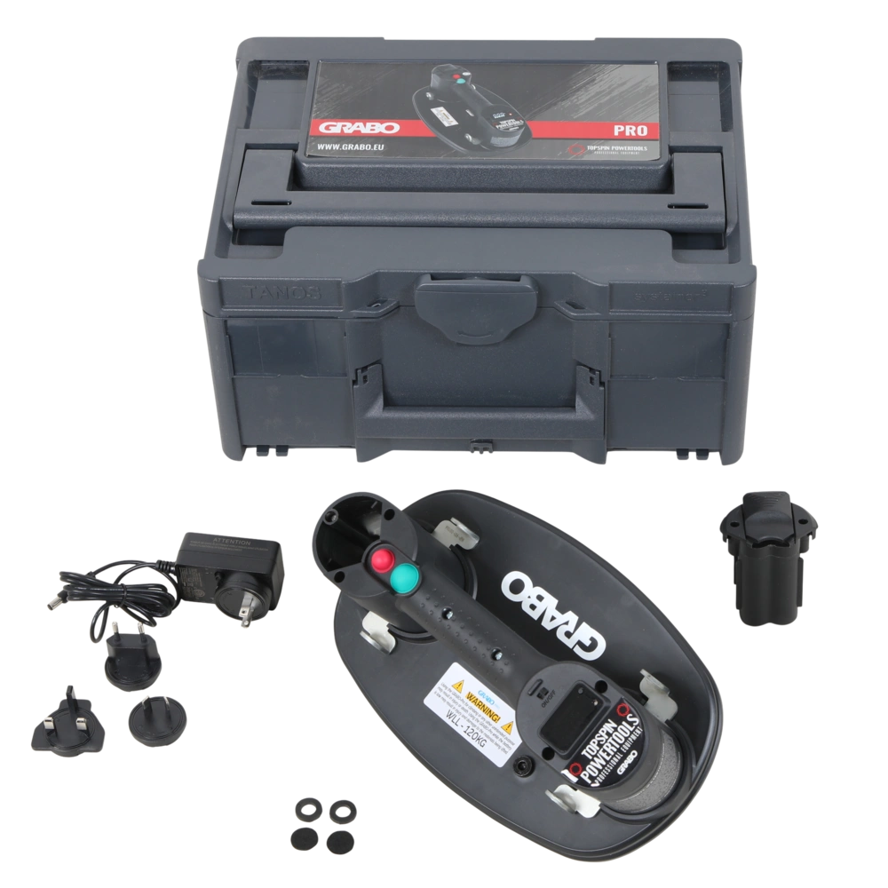 Toutes les informations sur le produit FournituresDispositif de levage à ventouse sur batterie pour soulever facilement des carreaux, du verre, des plaques de plâtre et bien plus encore. Contrairement aux simples outils à main, la puissante pompe à vide peut également soulever des objets aux surfaces inégales, poreuses et rugueuses. Pierre naturelle, béton brut, bois, carreaux de céramique ou damiers - aucun problème. La pompe peut être activée à tout moment à l'aide du bouton-poussoir situé sur la poignée pour maintenir le vide. En fonction des matériaux aspirés, l'appareil de levage par aspiration a une capacité de levage maximale de 120 kg. Des œillets stables sur l'appareil permettent également l'utilisation de ceintures. Idéal pour le transport de gros appareils électriques ou de chauffage.
