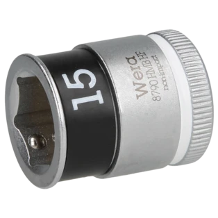 Douilles pour clés de la série Zyklop pour utilisation manuelle et utilisation dans les machines électriques. Les écrous ont le code couleur « Take it easy » pour permettre de trouver facilement et rapidement la taille dont vous avez besoin. Ils sont dotés de rainures à bille et s'adaptent aux vis et écrous hexagonaux externes.
