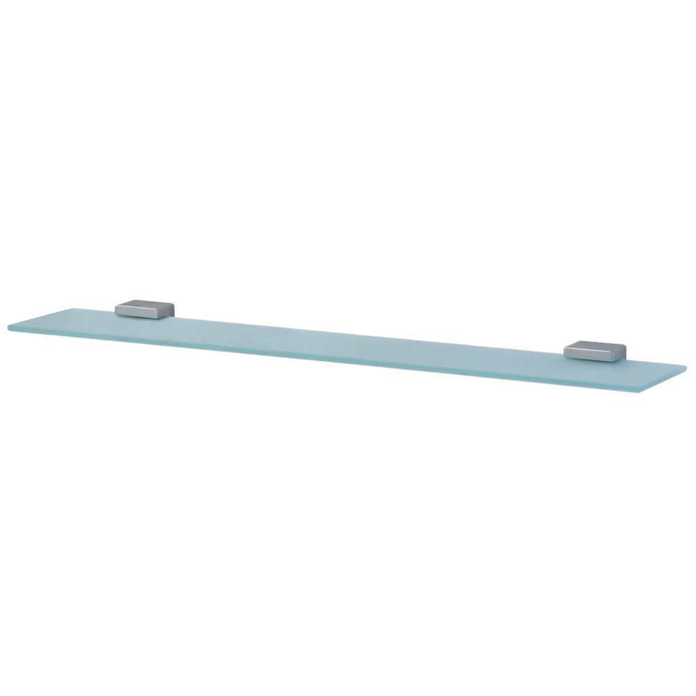 Plateau en verre cristal satiné avec deux supports chromés pour le montage mural.