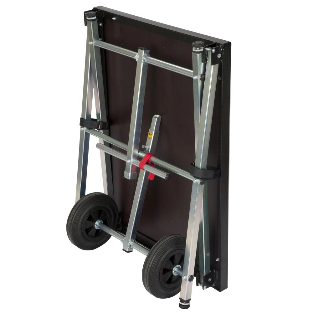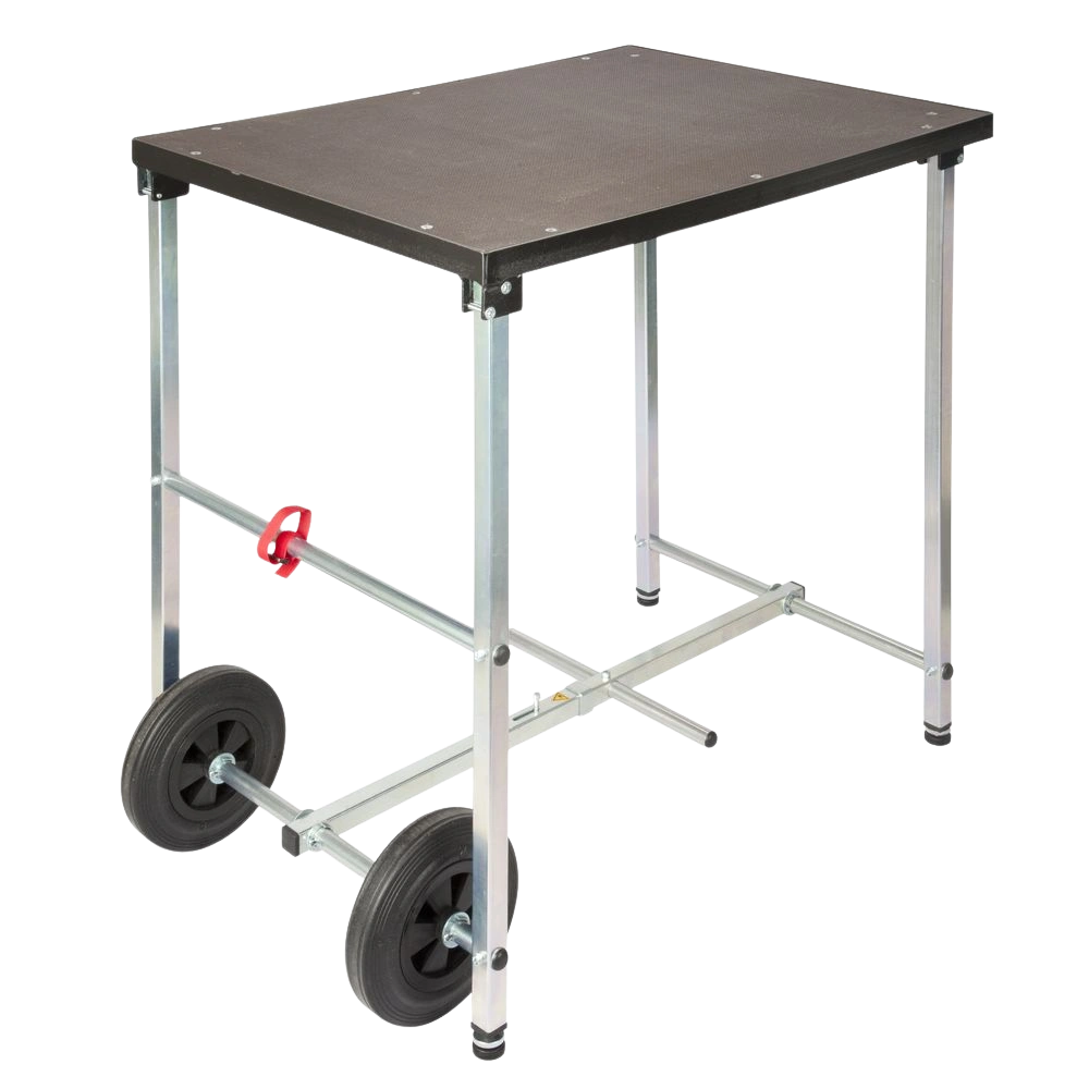 L'établi WORK 'n' ROLL d'OEG avec des roues robustes adaptées au chantier offre au monteur une mobilité maximale: il est aussi bien mobile en état plié qu'en état monté...