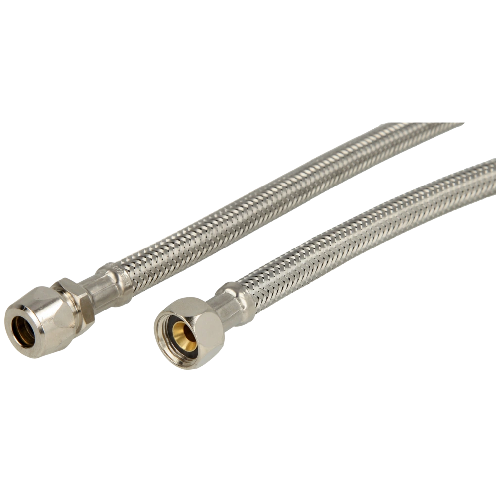 Flexible de raccordement avec âme en plastique hygiénique et gaine en acier inoxydable durable pour le secteur sanitaire et l'eau potable.