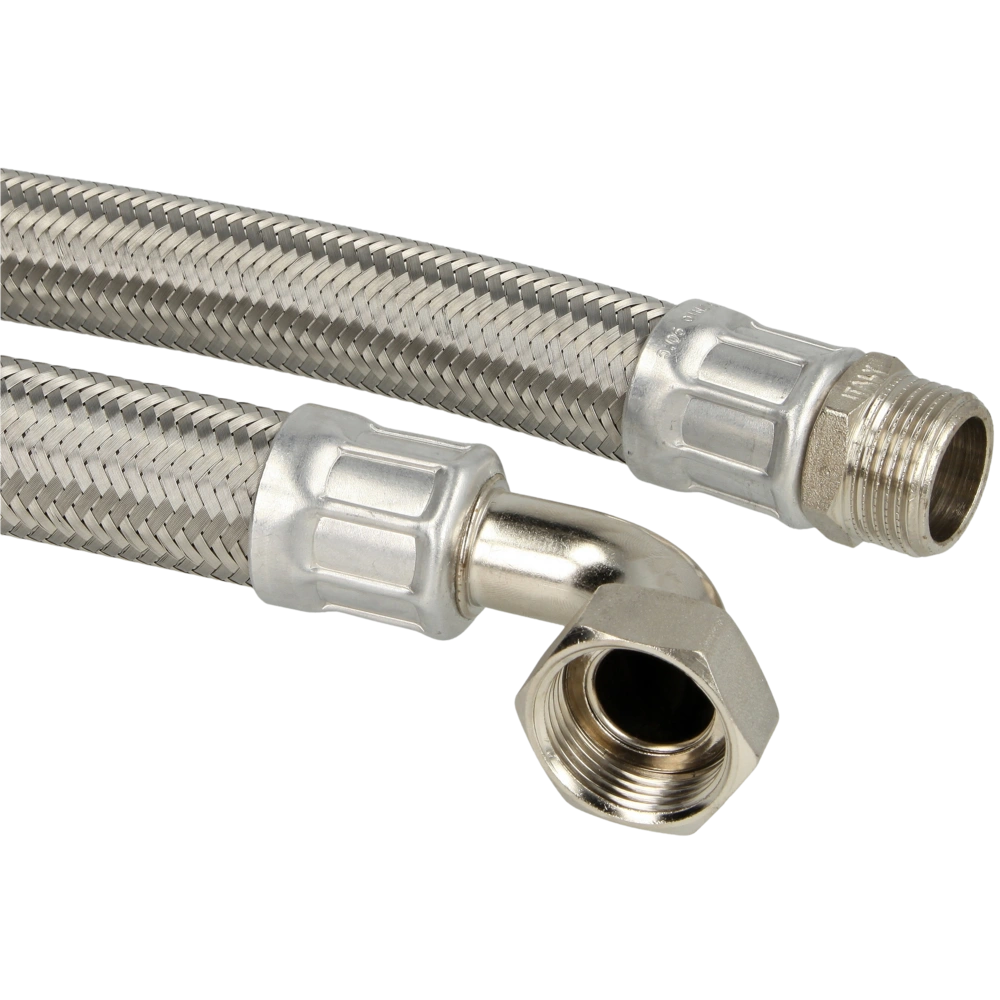 Flexible de raccordement pour les applications sanitaires et d'eau potable avec un tuyau en plastique hygiénique et une gaine en acier inoxydable durable.