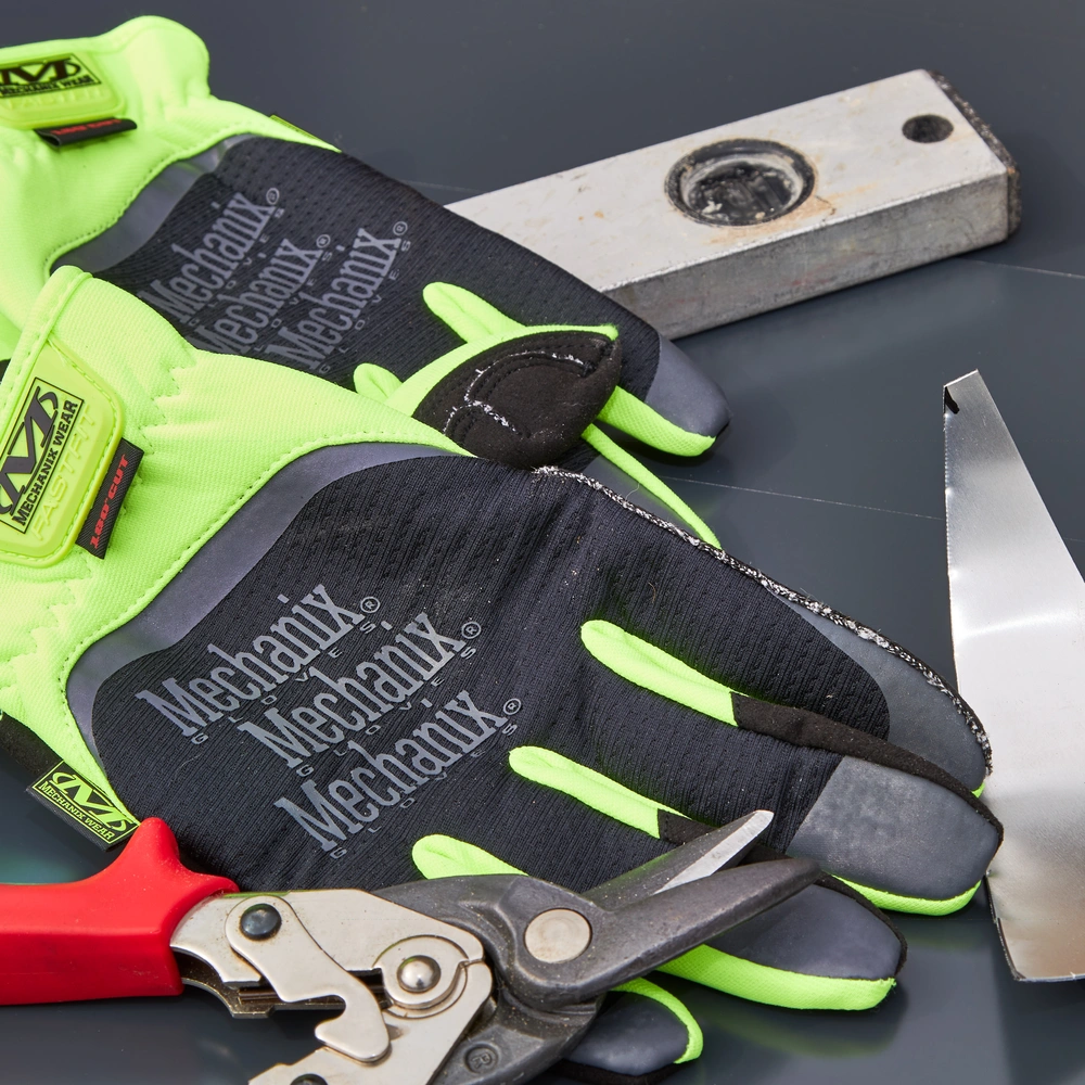 Lorsque vous travaillez avec des matériaux à bords tranchants, une couche intérieure de tissu Armortex® résistant aux déchirures et aux coupures protège les paumes et les doigts des blessures.