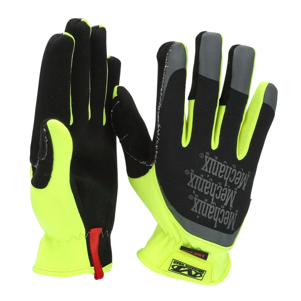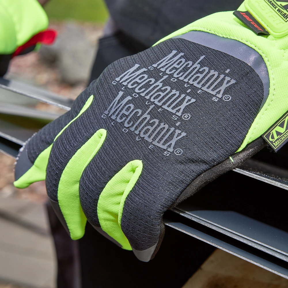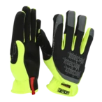 Gants de travail avec haute résistance à la coupure et poignets de couleur de signalisation.