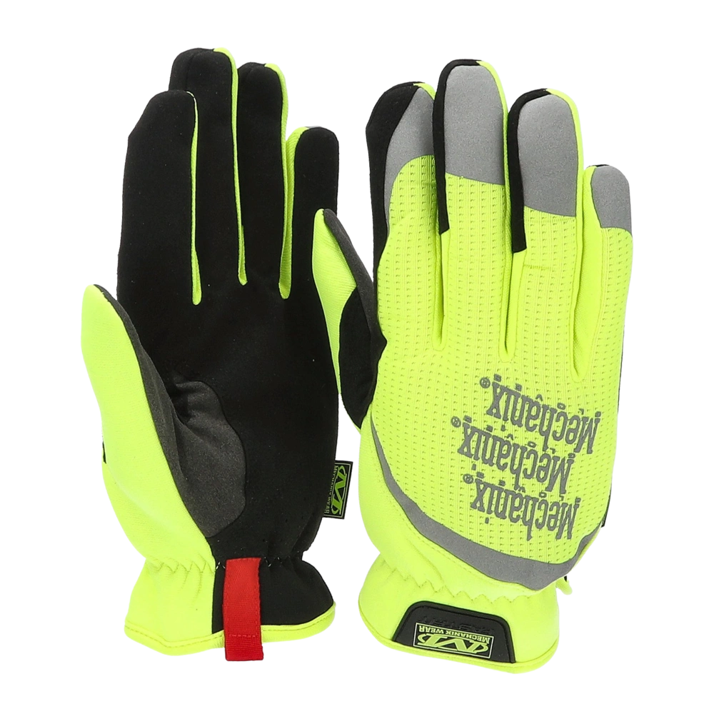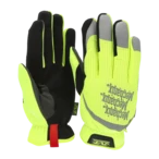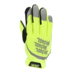 Gants de travail avec bouts des doigts réfléchissants et dessus jaune fluo.
