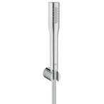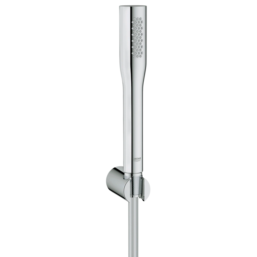 La douchette Euphoria Cosmopolitan Stick de GROHE est parfaite pour la salle de bains moderne - que ce soit sous la douche ou dans la baignoire. Equipé de la technologie GROHE EcoJoy®, elle permet de réduire la consommation d'eau jusqu'à 50%, le jet reste inchangé. La surface GROHE StarLight® garantit une esthétique irréprochable et durable et est particulièrement résistante à la saleté et aux rayures. Grâce aux picots flexibles en silicone de la technologie GROHE SpeedClean, les dépôts légers de calcaire peuvent être éliminés sans effort en essuyant doucement avec la main. Grâce à la technologie Twistfree, le flexible de douche Silverflex est protégé contre la torsion.