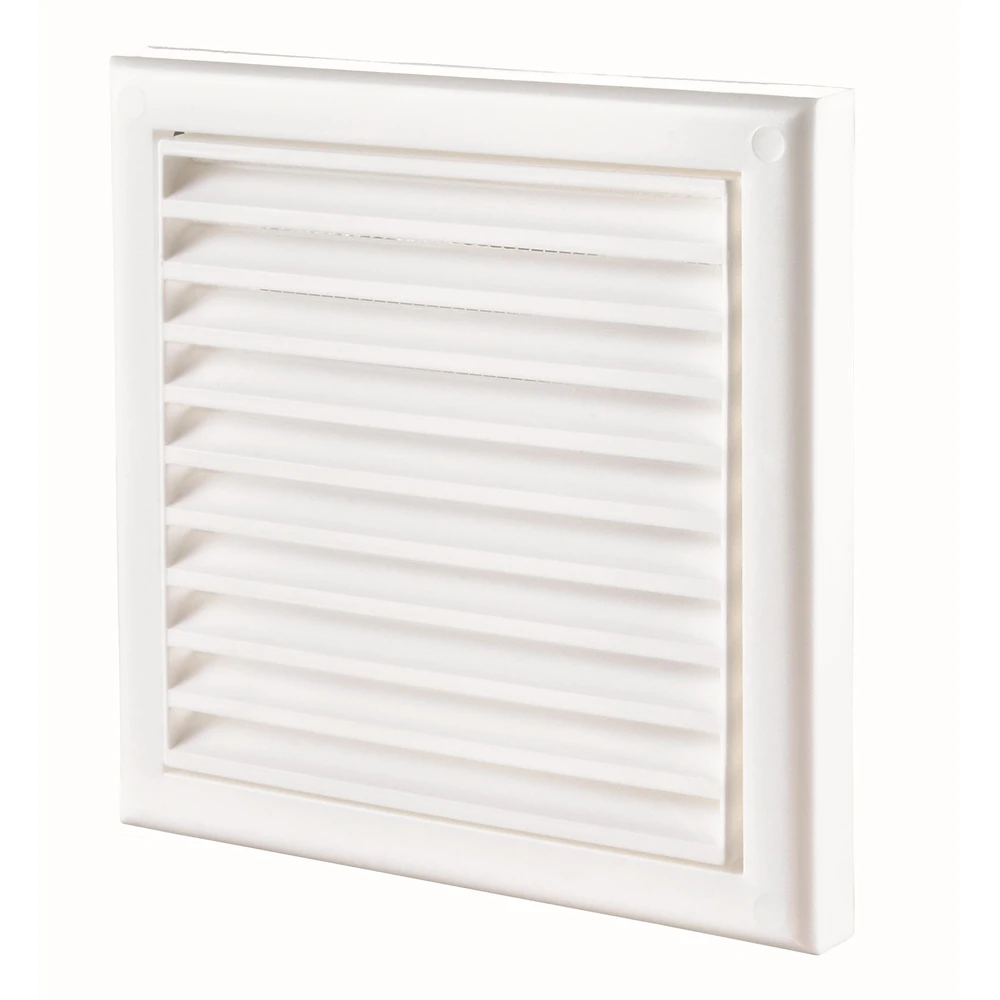 Grille d'aération en plastique résistant à la température et aux UV pour un montage mural ou au plafond sur des gaines d'aération rondes ou carrées. La grille est équipée d'un support encastré et d'une moustiquaire.