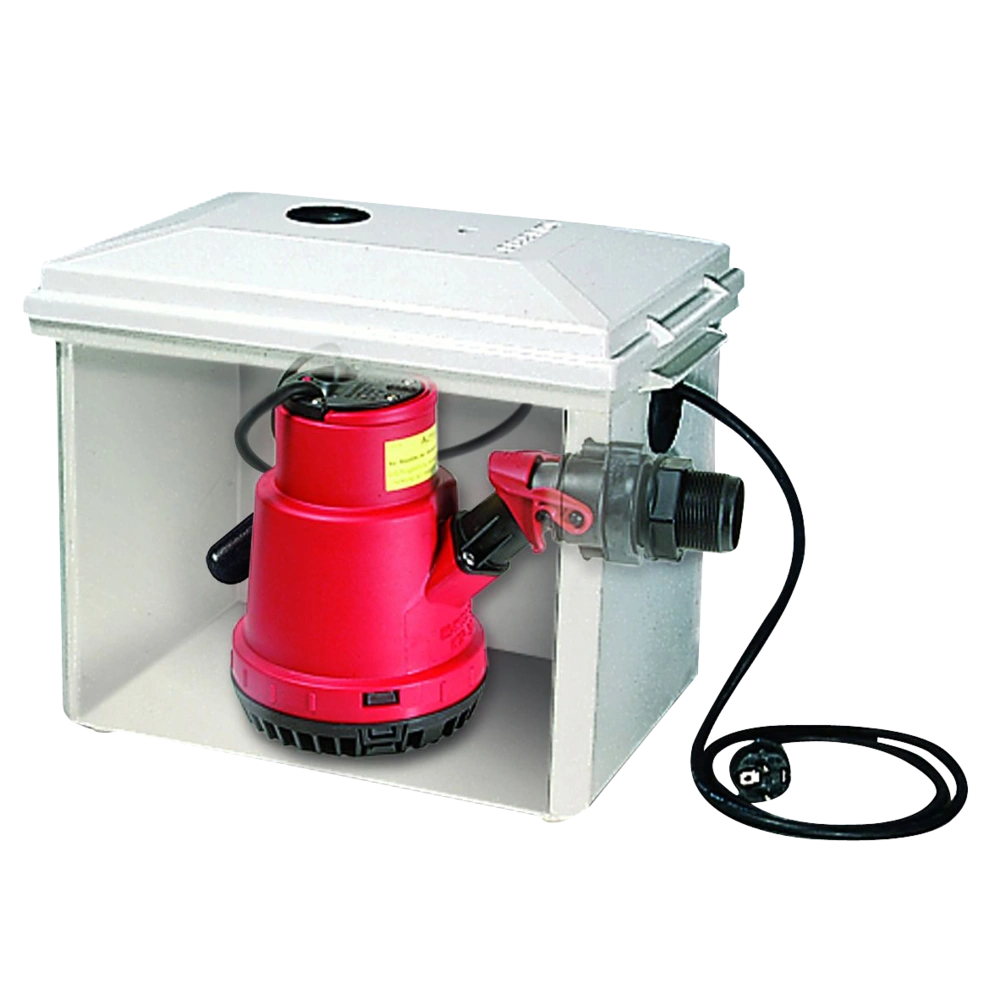 Petite station de relevage destinée à l'évacuation des eaux usées sans matières fécales. Convient pour le raccordement de douches, baignoires, lavabos, éviers, ainsi que de lave-vaisselle ou de lave-linge...