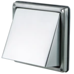 Hotte d'évacuation en acier inoxydable avec tubulure de raccordement et clapet anti-retour pour montage mural extérieur. La hotte destinée à couvrir les ouvertures d'évacuation d'air...