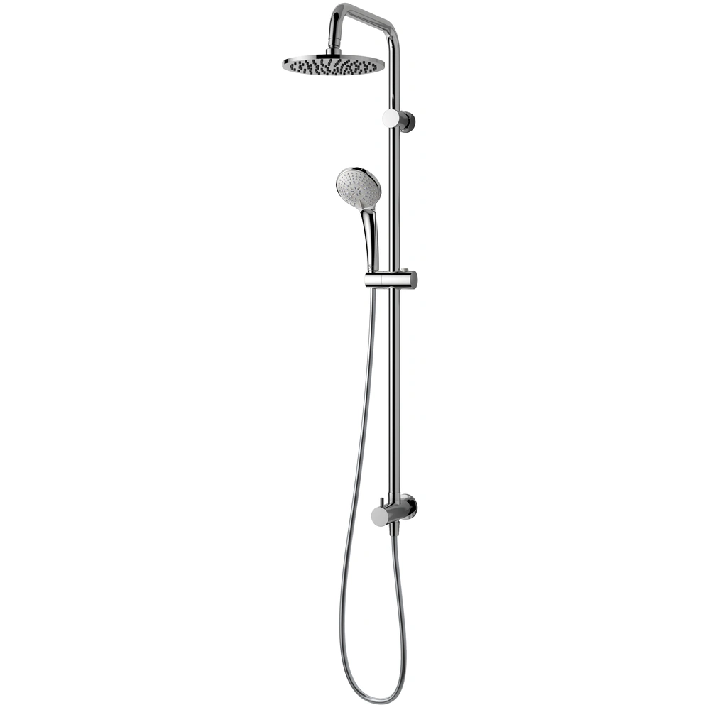 Toutes les informations sur le produit FournituresSystème de douche à combiner avec une robinetterie encastrée. Le système de douche comprend une douche de tête en métal et une douchette à main avec fonction anticalcaire et les types de jets suivants : pluie, pluie battante et jet de massage. Il comprend également une barre de douche alimentée en eau avec un bouton-poussoir coulissant pivotant, un flexible de douche et un inverseur automatique de la douche de tête à la douchette.