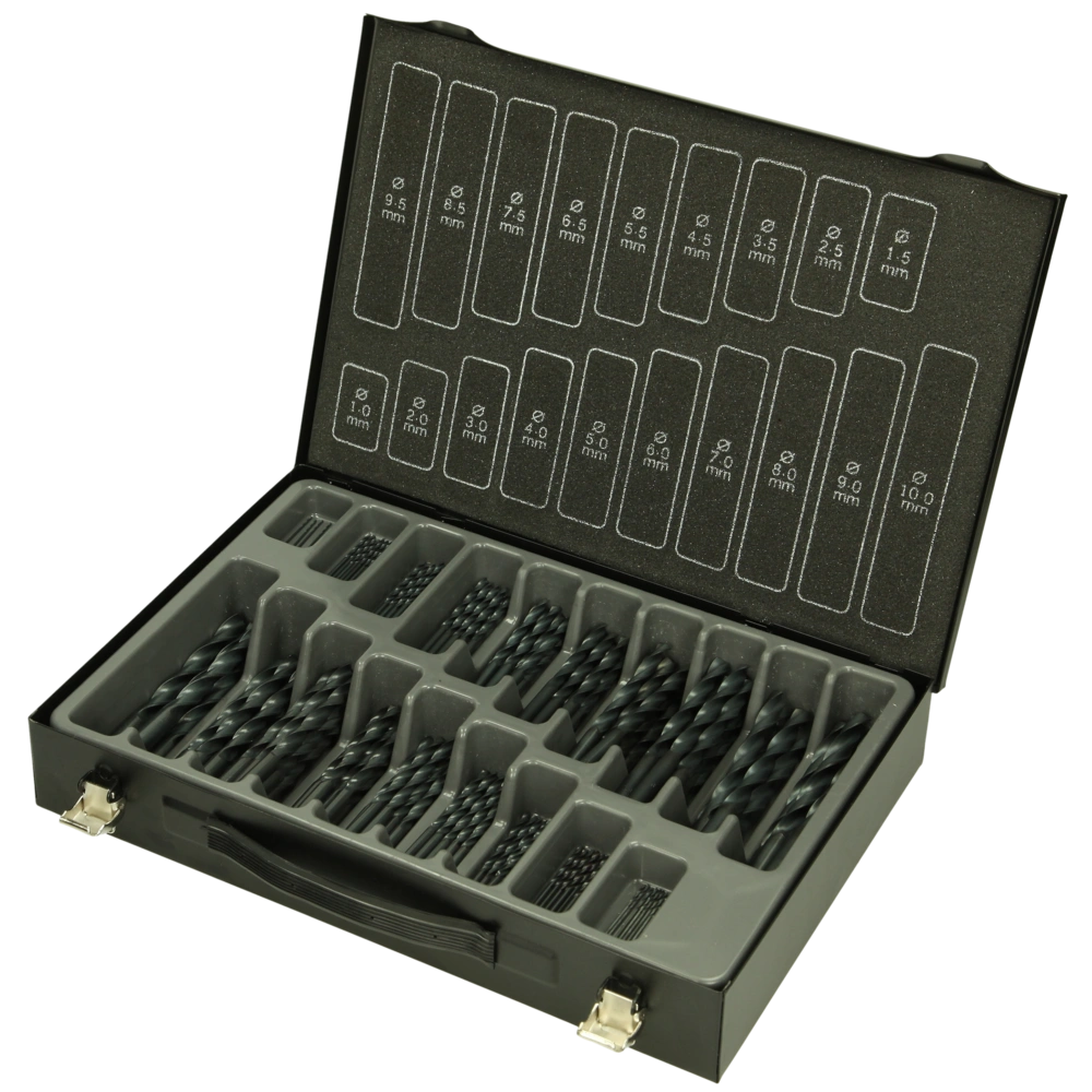 Toutes les informations sur le produit FournituresAvec ce jeu de forets hélicoïdaux dans un coffret en tôle d´acier vous avez sous la main tous les forets courants HSS-R rangés de Ø 1,0 à 10 mm. Les forêts laminés disposent d'une queue cylindrique, d'une pointe en croix de 135° et sont équipés à partir d'un diamètre de 3 mm d'un affutage en croix.