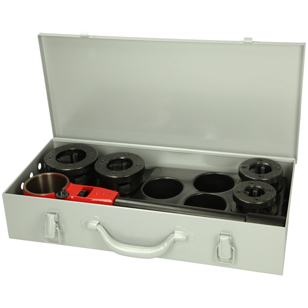 Pince à fileter manuelle robuste pour la découpe de filetages de tubes conformes aux normes. La forme particulièrement fine de la tête de la clé à cliquet avec bras tubulaire divisible permet...