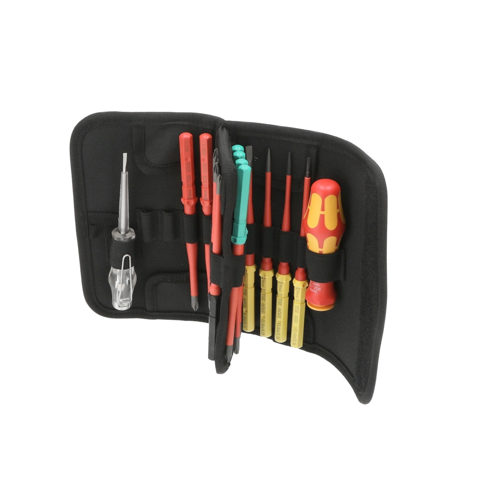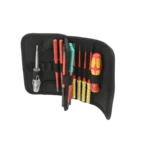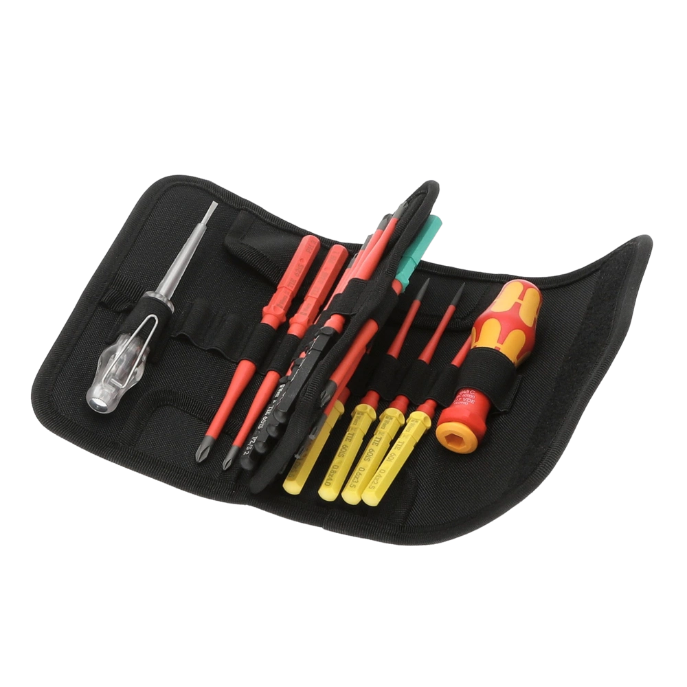 Pour un transport pratique, le kit est livré dans une trousse pliable en textile robuste avec système velcro Wera2go.