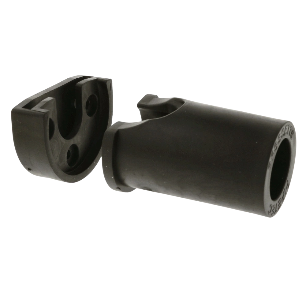 Kit en deux parties composé d'une plaque murale en caoutchouc et d'un manchon en caoutchouc pour le découplage acoustique des équerres murales à sertir, à emboîter et à visser. La transmission...