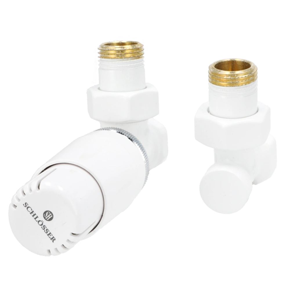 Kit de raccordement de radiateur aux couleurs assorties. Idéal pour les radiateurs de salle de bains avec raccords extérieurs.