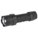 Lampe de poche étanche à piles avec boîtier en acier inoxydable recouvert de plastique et protection anti-roulement. La lampe peut être réglée en continu d'un faisceau large à un faisceau étroit et peut être utilisée avec 3 niveaux de luminosité.