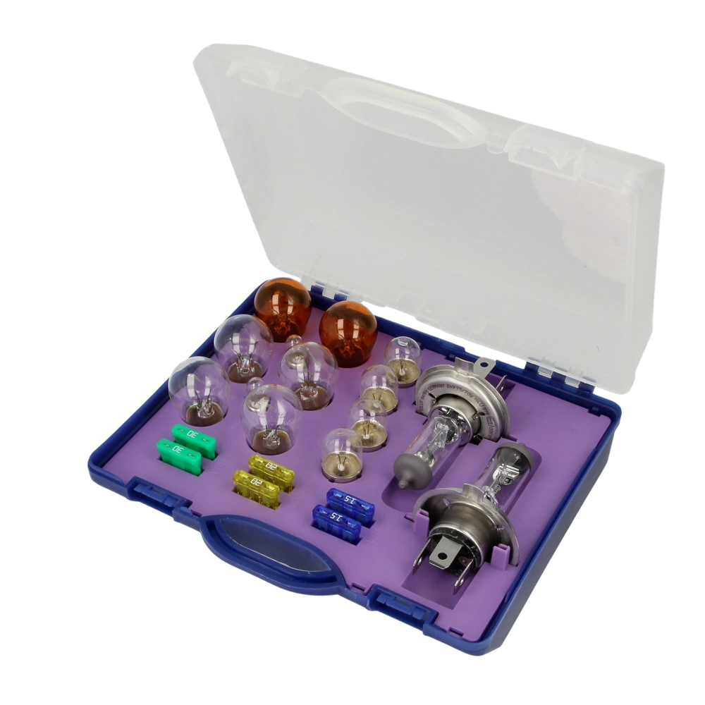 Vollständige Ersatzlampenbox für den schnellen und einfachen Austausch von defekten Glühlampen in LKW und Bussen. In der praktischen Box sind die Reservelampen sicher aufbewahrt und jederzeit zur Hand.