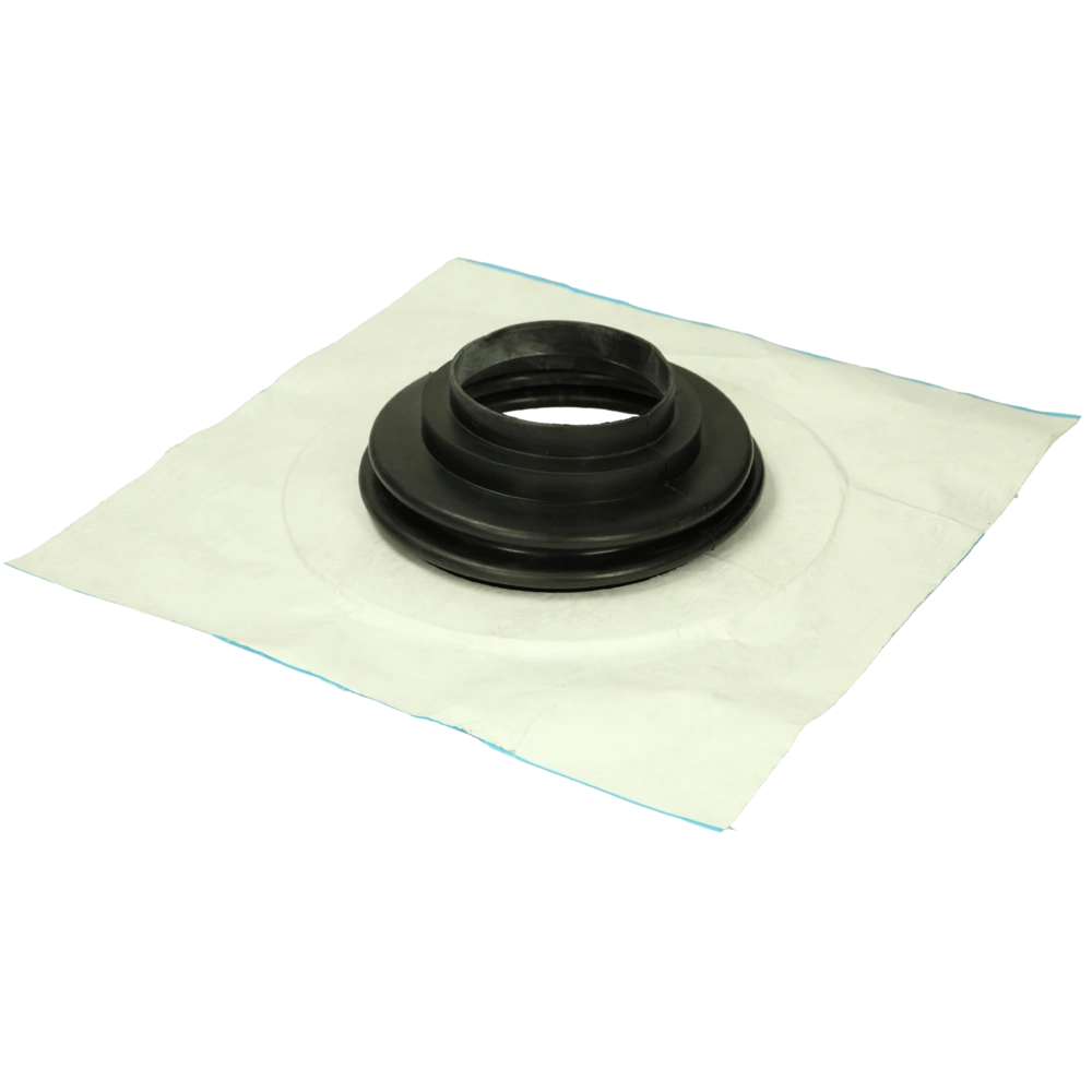 La manchette pour pentes de toit à 45° est résistante à la déchirure, hydrofuge et résistante au vieillissement. Elle est parfaitement adaptée au scellement rapide et permanent des pénétrations dans l'enveloppe du bâtiment. La manchette se compose d'une traversée flexible en caoutchouc. Celle-ci est reliée à un patin auto-adhésif composé du matériau support Tyvek® et d'une couche d'adhésif acrylique résistant au vieillissement.