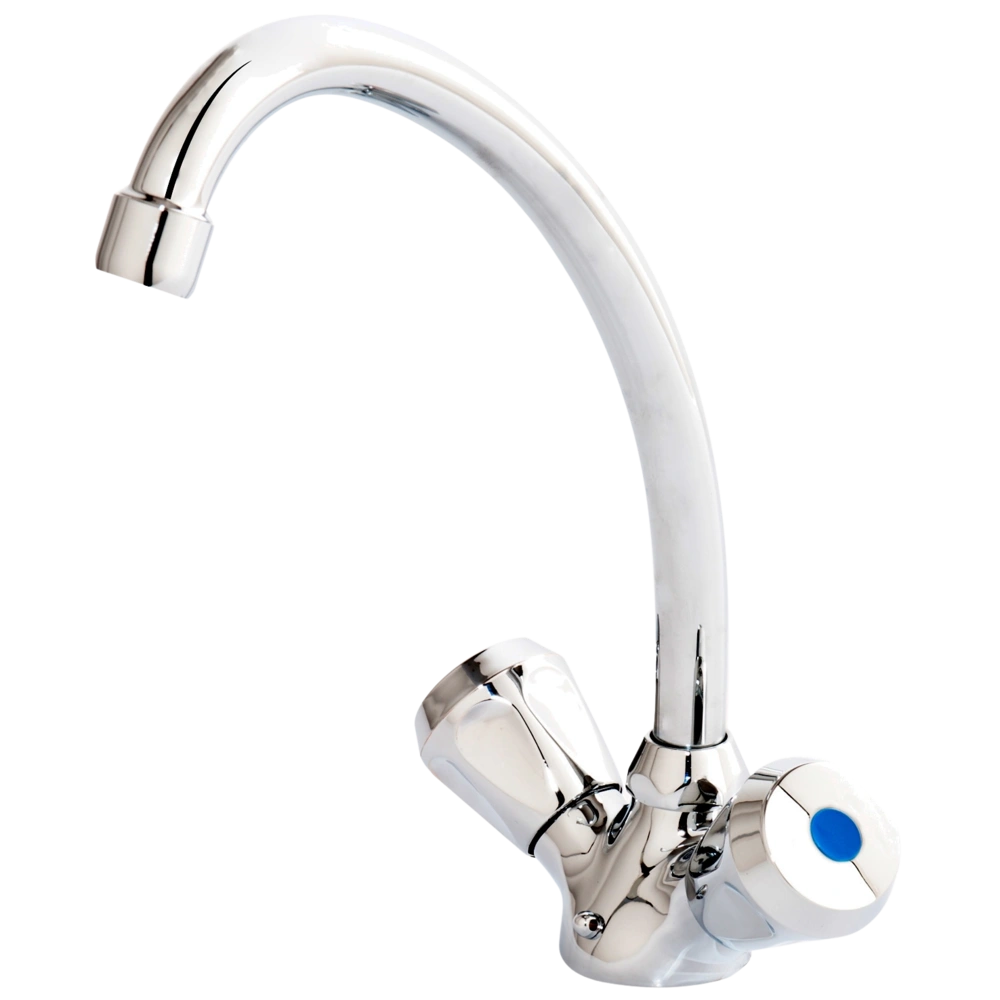 Ce mitigeur d'évier est la bonne solution pour ceux qui n'ont pas besoin de garniture d'écoulement. Il est équipé d'un anneau pour chaîne pour bouchon et de poignées en plastique isolées thermiquement.