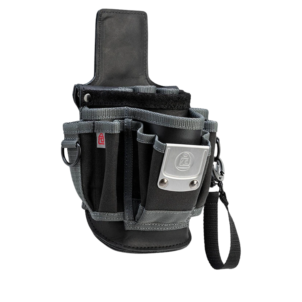 Avec le clip en nylon stable, le sac reste bien fixé à votre ceinture ou à votre sac à outils. La patte en cuir renforcée et inclinée à l’arrière permet de glisser rapidement et en toute sécurité le sac dans votre poche de derrière ou de côté.