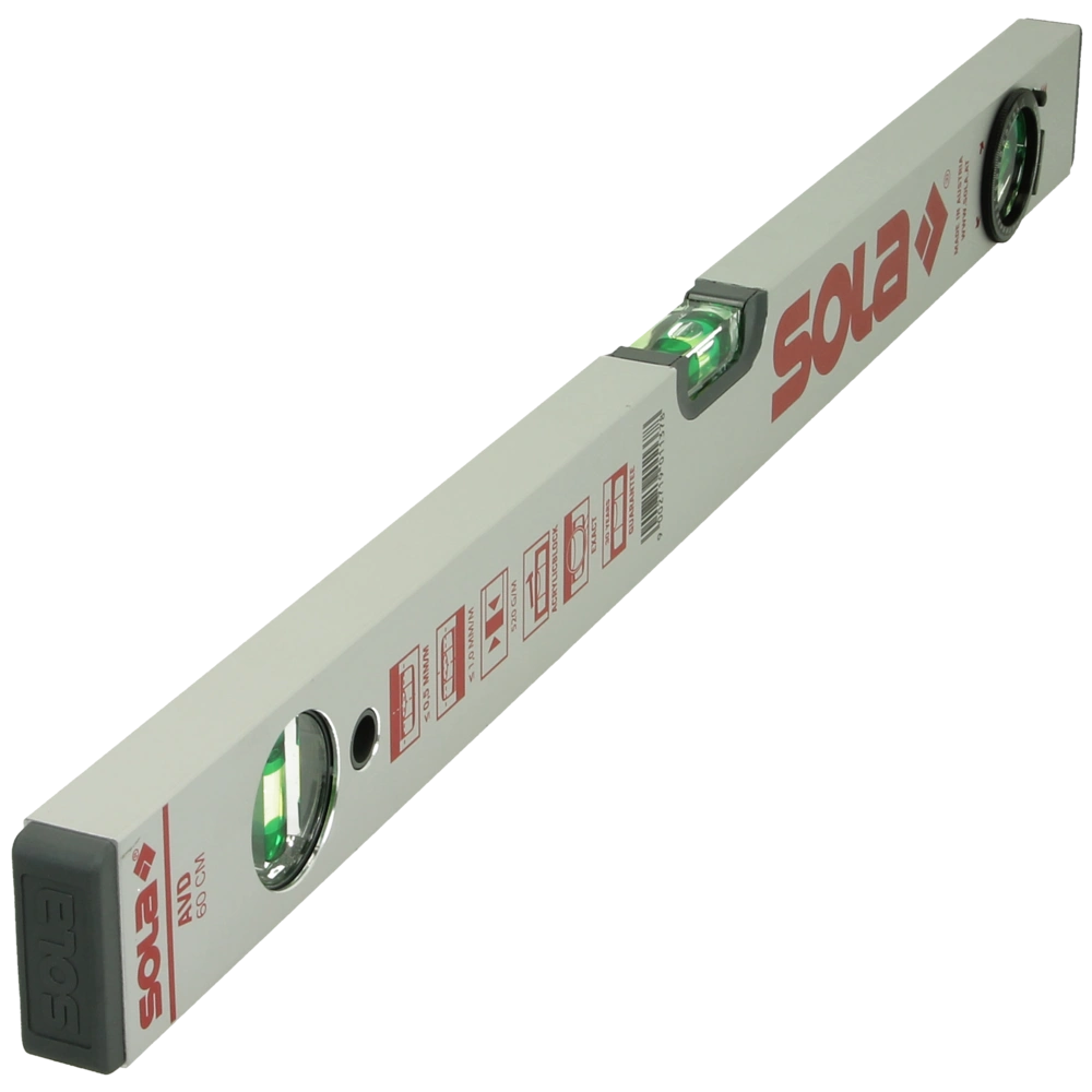 Le niveau à bulle d'air AVD de SOLA est conçu pour une longue durée de vie grâce à son profilé en aluminium robuste. Les fioles brevetées SOLA-FOCUS permettent une meilleure lecture plus précise...