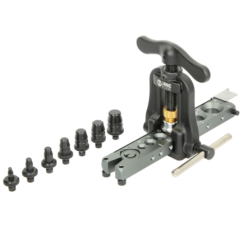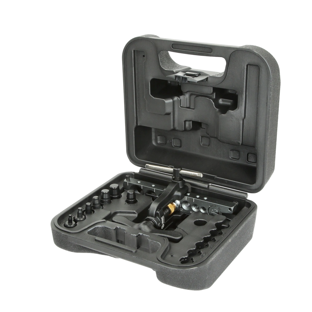 Toutes les informations sur le produit FournituresOutil de sertissage et d'évasement pour allonger et raccorder des tubes en cuivre à d'autres tubes. Le set de 9 pièces est livré dans une mallette pratique et facilite le travail grâce au changement facile des embouts et à l'ébavurage automatique du cône de sertissage.