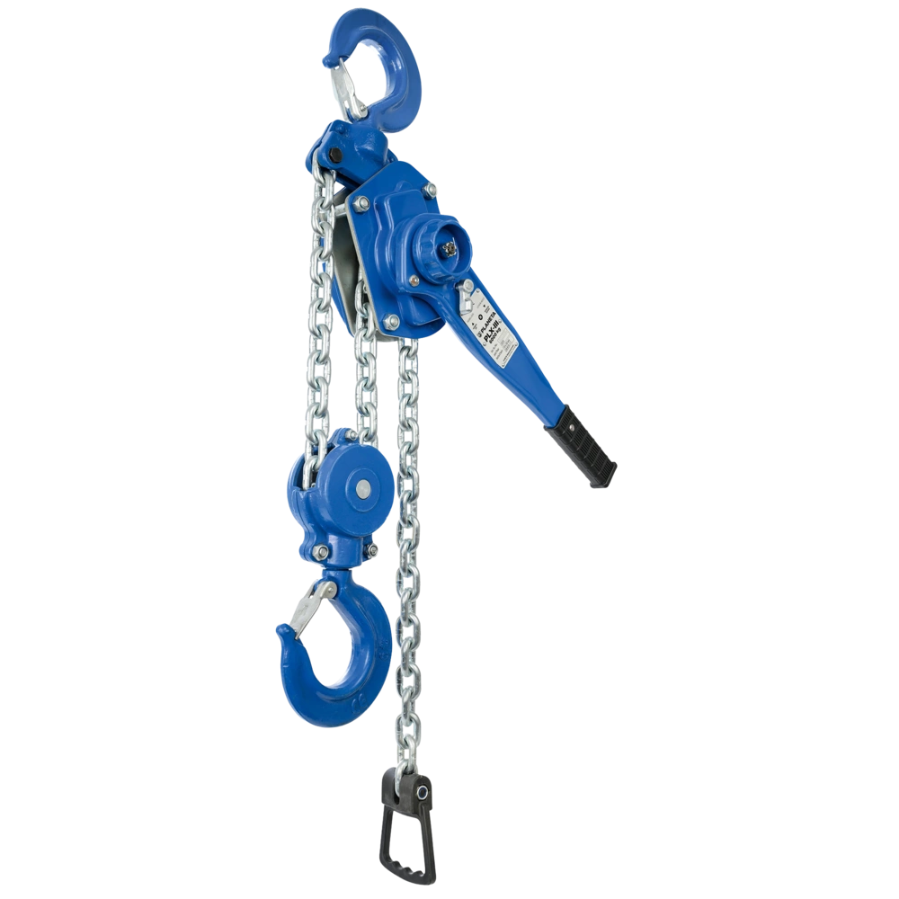 Palan à levier avec brin de chaîne pour l'industrie et le service pour soulever, tirer et arrimer en toute sécurité. L'embout de chaîne robuste empêche le passage de la chaîne dans l'appareil. En roue libre, la chaîne non chargée peut être tirée à travers l'appareil. Les crochets porteurs et les crochets de charge peuvent tourner librement et sont équipés de sécurités de crochet galvanisées à ressort. Un palan à levier professionnel d'une grande longévité.