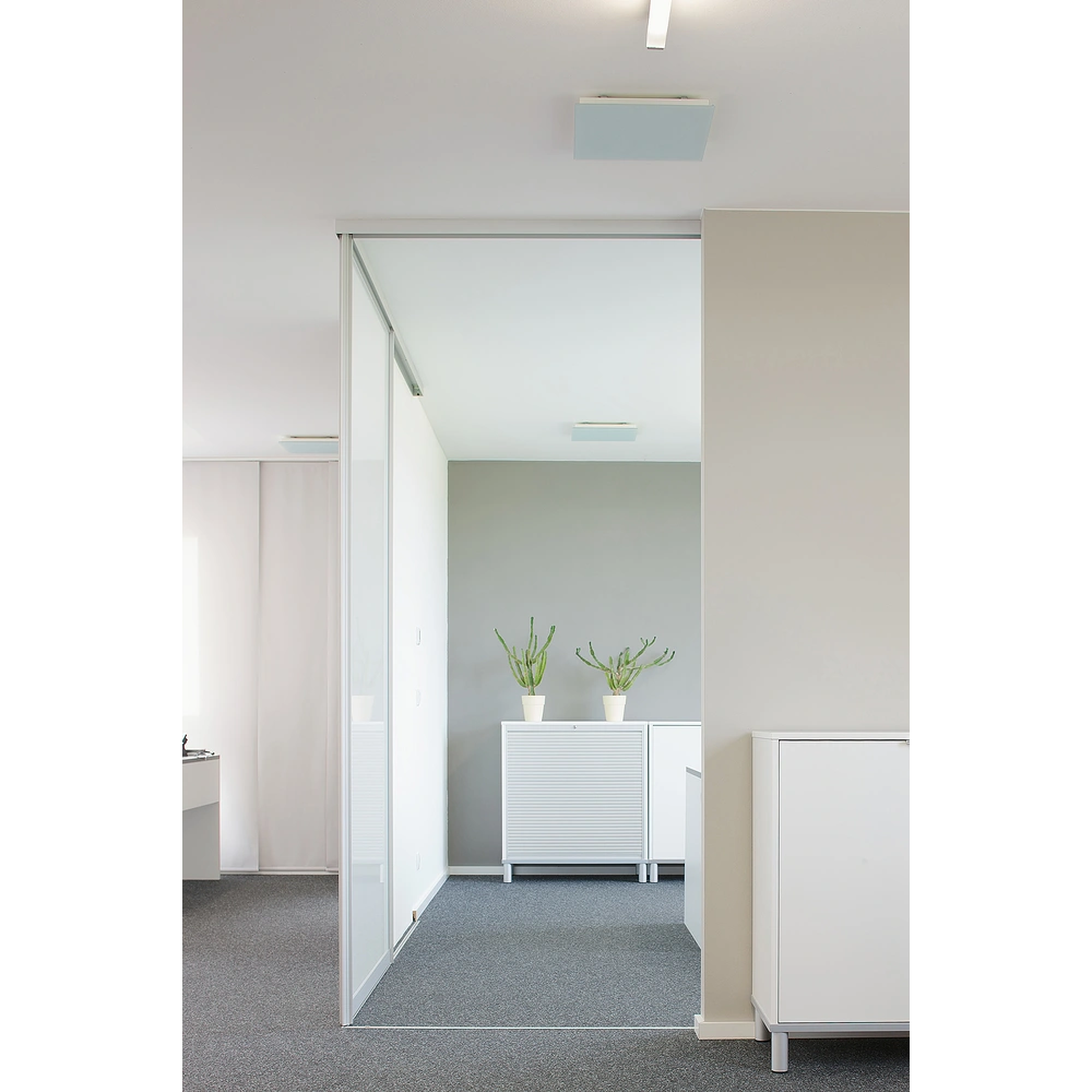 Le panneau chauffant est conçu pour un montage en saillie au plafond et pour la suspension par câble. Son rayonnement infrarouge à ondes longues réchauffe uniformément les surfaces de la pièce. De cette façon, un niveau de température agréable est atteint et maintenu.