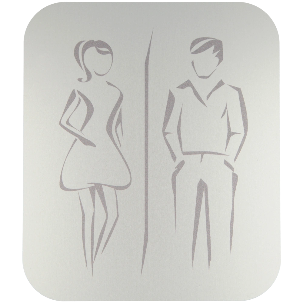 Pictogramme autocollant "Toilettes" en aluminium anodisé pour le marquage visuel des portes.