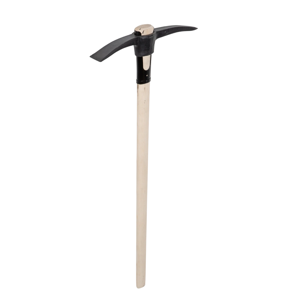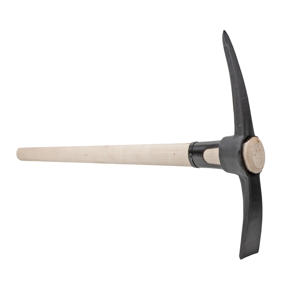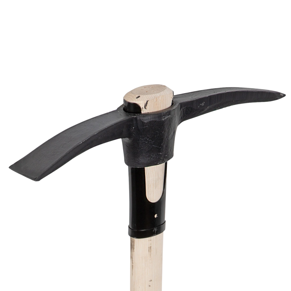 Pioche forgée en acier spécial. Un manchon de renforcement supplémentaire sur le manche rend cette pioche extrêmement stable. Elle est utilisée pour les sols pierreux et rocheux. Le côté pointu...