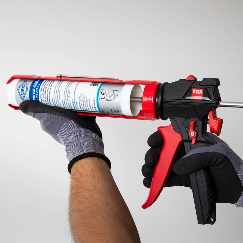 Le boîtier métallique robuste avec cadre soudé et tige d'avance trempée garantit une longue durée de vie, même dans des conditions difficiles. La poignée ergonomique en plastique avec surface antidérapante assure une prise en main agréable et sûre, même lors d'utilisations prolongées. Les résidus de produit durcis dans le col de la cartouche peuvent être facilement éliminés à l'aide du mandrin métallique intégré. Et grâce au crochet de ceinture rabattable, le pistolet à cartouche reste toujours à portée de main pendant le travail, pour un déroulement sans interruption.