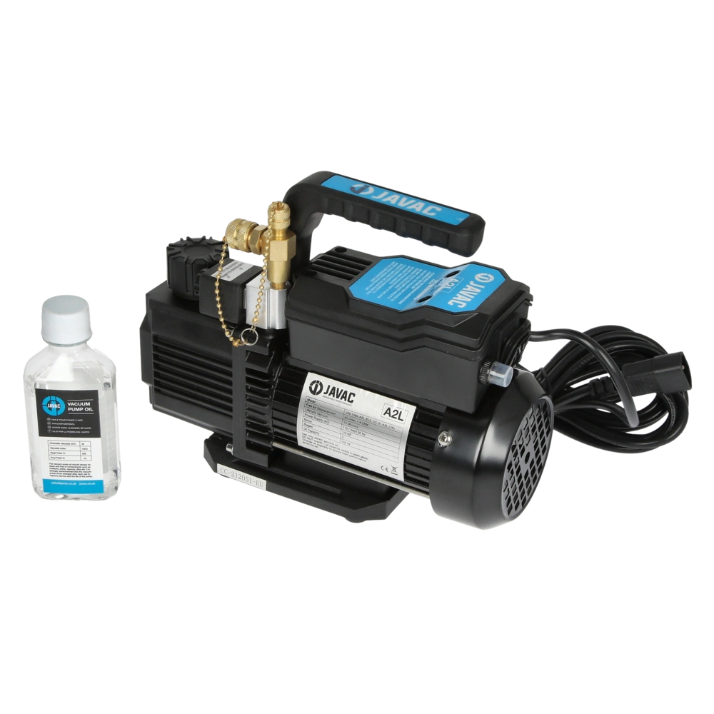Pompe à vide double étages pour faire le vide dans le circuit frigorifique de climatiseurs et de pompes à chaleur avec des fluides frigorigènes courants. Utilisable également pour les fluides frigorigènes...