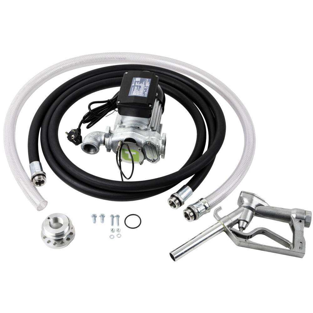 La pompe électrique convient pour le diesel, le mazout et l'antigel de radiateur. Elle est auto-amorçante et possède une protection intégrée contre le levage. Le tuyau d'aspiration dispose d'un filtre de pied...