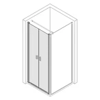 Porte battante pour cabines de douche. La porte battante est montée sur une partie latérale.
