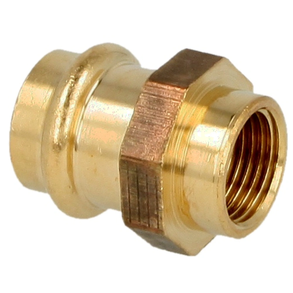 Raccord à sertir en laiton rouge avec contour de sertissage V pour le montage dans les installations d'eau potable et les systèmes de chauffage.