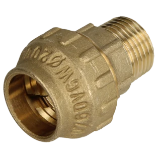 Raccords à bague de serrage en laiton pour le raccordement de tuyaux en PE. Les raccords peuvent être utilisés dans les installations d'eau potable.