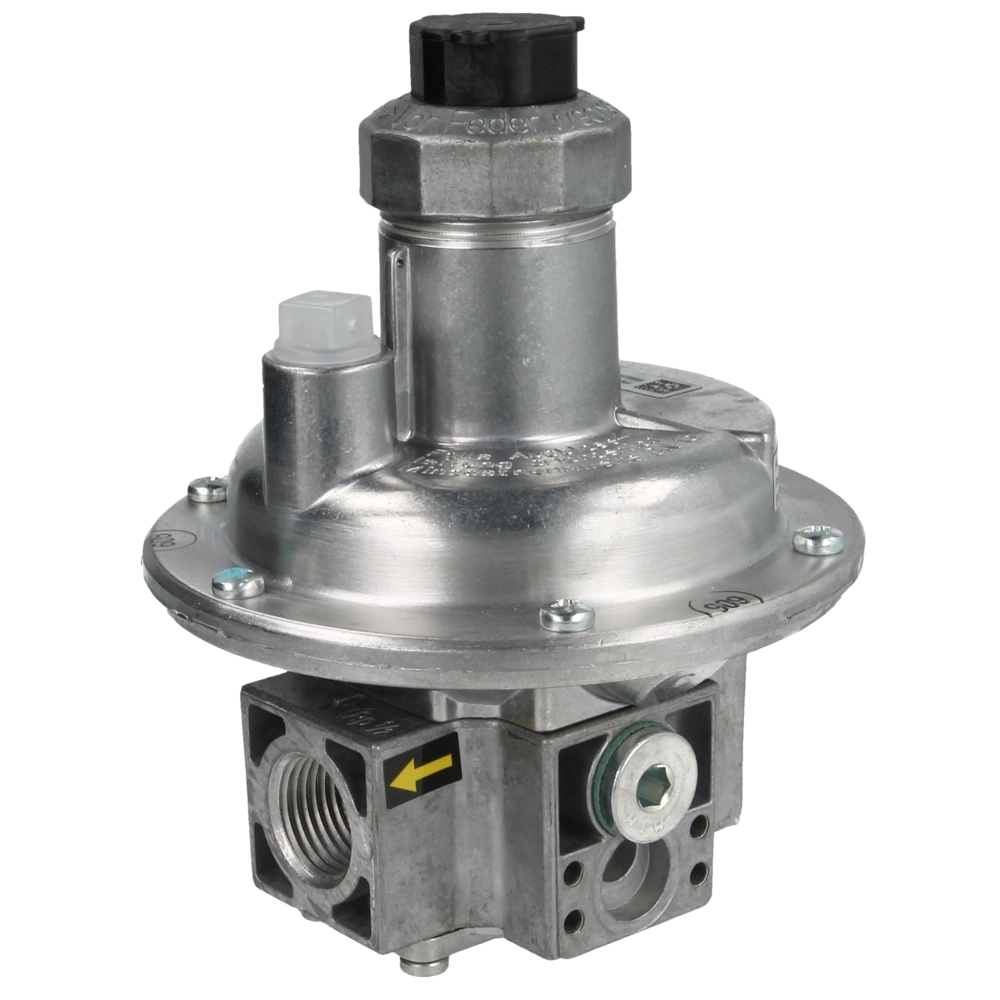 Pression entrée max. pe 0,5 bar avec diaphragme de sécurité, DIN 3380/SG 10, équilibrage de pression d'admission, position zéro, modèle standard pour pressions de réglage 10-30 mbar (ressort bleu)...